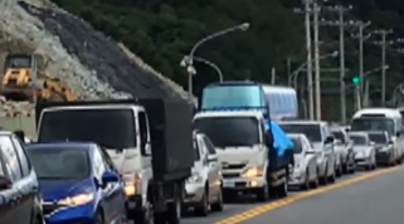 花蓮人連假回家,真的是漫漫長路,民眾向東森新聞投訴,他原本預期蘇花公路管制21噸車輛進入,回家路途將會比較順暢,沒想到蘇花公路上還是有一大堆大卡車、砂石車,一路從台北到花蓮,開了6、7個小時,他痛批相關單位罔顧花蓮人的生命安全,塞車卡在隧道裡,萬一發生地震或落石意外,誰要負責?