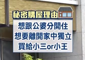 綜合出3大最多密戶選擇秘密購屋的原因,大部分都是想跟公婆分開住,或是想要離開家中獨立,買給小三或小王,傳統上都是用掛號信寄購屋資料、繳款單據、稅單,現在密戶都改以以LINE或是簡訊傳送,以防秘密購屋的行為造成家庭革命。