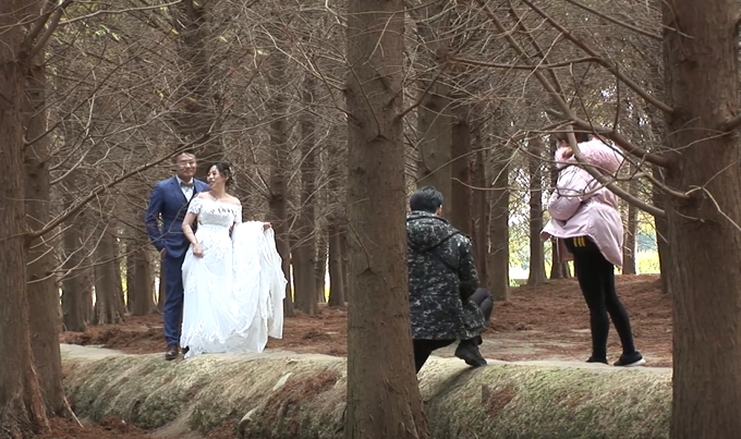 新娘:「因為我覺得這個季節落羽松滿漂亮的,想說為人生留下比較美好的回憶,我是桃園人,也想推薦在地的一些景點。」