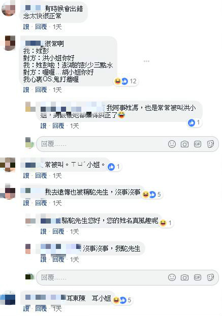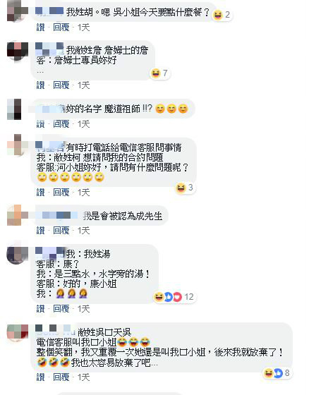 聽完這段對話,原PO疑惑寫道,「呃……是我聽錯了還是員工太累了?你們有名字被叫錯的時候嗎?」令人意想不到的是,貼文曝光後,瞬間引起網友們的共鳴,紛紛分享自身經歷,「我也曾經因為三橫一豎王被叫三小姐」、「我姓胡。嗯,吳小姐今天要點什麼餐?」、「我敝姓詹,詹姆士的詹 客:詹姆士專員妳好」、「我:我姓湯 客服:康? 我:是三點水,水字旁的湯! 客服:好的,康小姐」、「敝姓吳口天吳,電信客服叫我口小姐,整個笑翻,我又重覆一次她還是叫我口小姐,後來我就放棄了!」在網路上掀起一陣熱議。