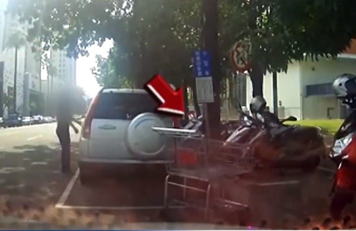 年關將近,家家戶戶都得大採買,賣場附近肯定大塞車,台中這位民眾到美式大賣場附近,想要找停車位都很頭疼,不過眼前這輛車正在準備上貨,他開到後方等待停車格,婦人看到有人在等停車格,推起空推車準備推回原位,沒想到竟然一個轉身,直接把推車棄置在路邊,讓後方的車主看了很傻眼。