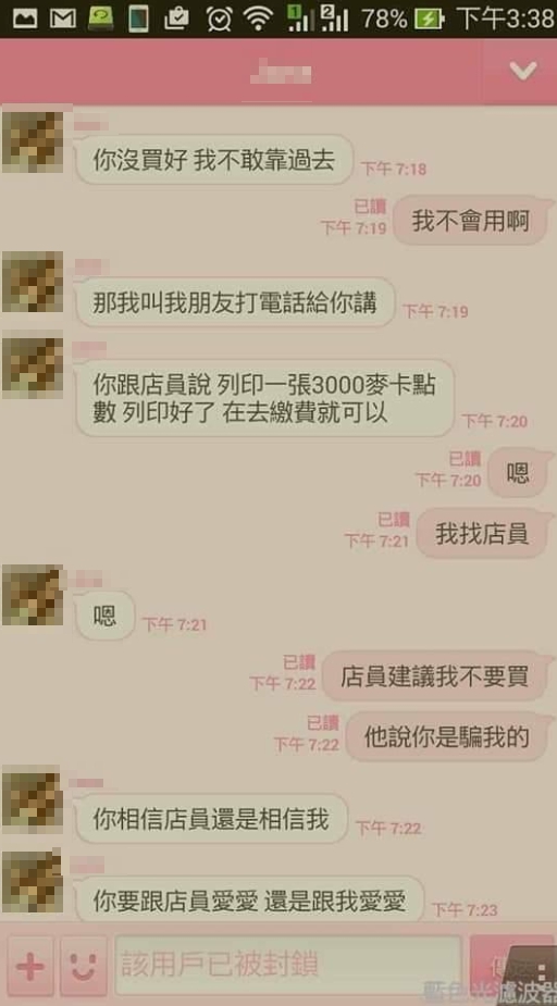 原PO在臉書《爆怨公社》貼出雙方對話紀錄,只見詐騙集團自稱是20歲,擁有C奶好身材的正妹,撒嬌要求他答應性交易,還說可以在自己的私密套房辦事,原PO簡單問了幾個問題後,馬上答應見面,詐騙集團信以為真,開始要求他去超商購買3000元的遊戲點數,「買好我就靠過去」,還貼心叮嚀「跟店員說自己用哦」,殊不知原PO開始以「店員認為是詐騙不給買」、「不會用電腦」等理由拖時間,接著乾脆反問詐騙集團「還是你幫我用?」