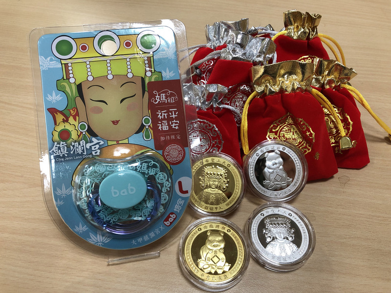 ▼民眾只要前往中港捐血室捐血,將可獲得限量的大甲鎮瀾宮媽祖的金、銀錢母及祈福奶嘴(圖/中央社)
