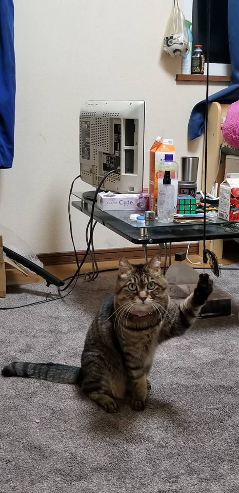 日本推特用戶「@equip_ssk」日前曬出一張照片,表示某天回家被媽媽告知,「你房間沒關燈,我以為是你在家」並叮嚀他「人不在房間一定要關燈」,但網友相當困惑,因為不管是自己或是家人,一直以來都養成,只要不在房間都會隨手關燈的習慣,正當他百思不得其解,轉身走進房間時,一開門看到的景象竟是自家的虎斑貓一臉驚恐的坐在地毯上,左手還高舉在空中,彷彿在說「嗨」迎接他。