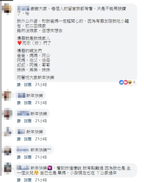 這一張帶有暖流的照片感動1.8萬名網友,不少人留言打氣,字字句句充滿的正能量「你還有我們這些廢友陪你過年啊!」、「我跟家裡神明,還有兩隻狗狗一起過年」、「新年快樂,我現在也是自己一個人過,同病相憐」、「新年快樂,妳不孤單,我也是一個人過年」、「他們一直都在不曾離開,祝你們新年佳節愉快」、「他們都在守護你,雖然有點孤單,但是他們都在的」。對於排山倒海的祝福,原PO則感恩回應「謝謝大家,每個人的留言我都有看…雖然沒娘家,但想來想去,爆廢就是我娘家人,愛死你(妳)們了」。