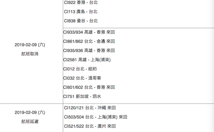 後天(2/10)取消3航班