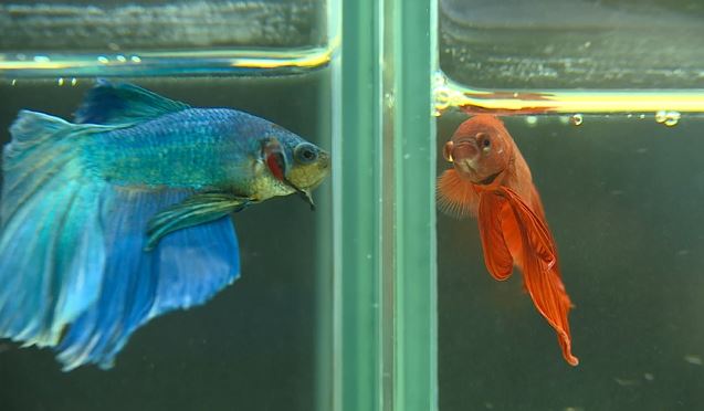 專業水族館業者陳虹榜:「因為鬥魚天生尤其公的,就是很愛鬥,一看到對方,尾巴就像是扇子這樣子,馬上打開就要跟(對方)PK這樣,所以還是要(用紙)隔一下,讓牠看不到對方,保持體力。」