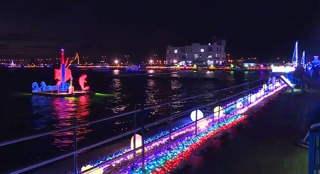 有在水面上的,還有靠著岸邊的,打造海灣燈區,也是台灣燈會30年來首創。主燈區2月15日起試營運,2月19日台灣燈會正式開幕後,每晚都有精彩的表演節目,民眾多利用接駁車前往,避免塞車之苦。