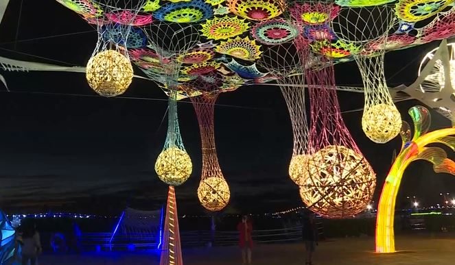 試營運就跑來先睹為快的民眾,還真不少,台灣燈會邁入30屆,主燈設計突破生肖的造型表現,以巨鮪來富為主題意象,主辦單位在屏東規劃三大燈區。其中大鵬灣燈區人氣最高,每一個作品都各具特色,不管是抽象的,還是具象的,光彩炫目每一個,都像藝術品。