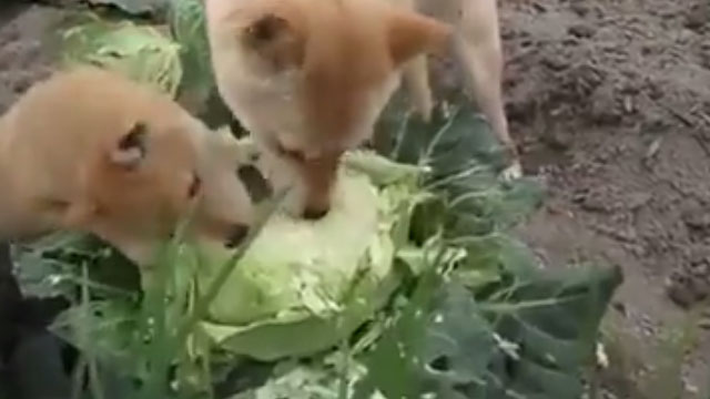 高麗菜,還不時發出清脆的嚼菜聲,原來狗狗們也喜歡生菜沙拉啊!