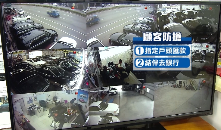 除了要保護顧客,車行自己當然也得注意,如果交車時已經超過下午3點半,銀行關門了,車行業者會把錢放在保險箱,也不急著隔天一早就去寄錢,就怕被有心人士跟蹤鎖定,另外車行內外都裝有許多監視器,有人出入一舉一動完全逃不過電眼,再加上24小時保全系統連線,防搶盡量做到滴水不漏,才能保住辛苦血汗錢。