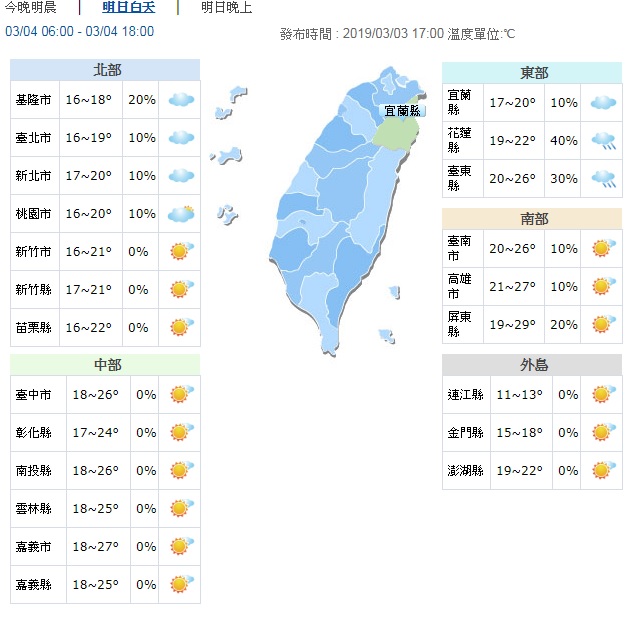▼明天4日全台天氣概況。圖/中央氣象局