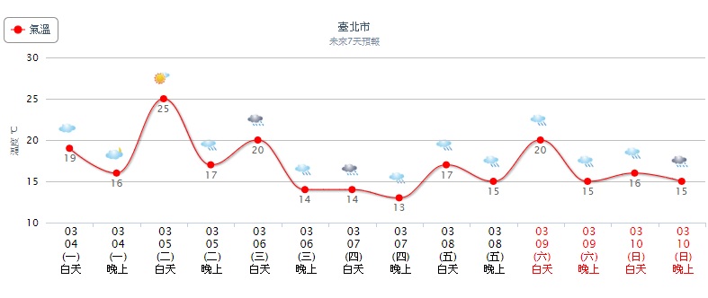 ▼北市未來一周氣溫趨勢。(圖/中央氣象局)