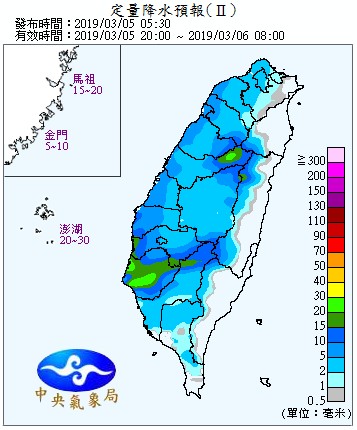 不過今天傍晚之後隨著鋒面接近,雲量逐漸增多,降雨機率也升高,中部以北地區及澎湖、金門、馬祖將轉為有陣雨甚至雷雨的天氣。此外,今晚起臺灣西半部地區及金門、馬祖易有低雲或局部霧影響能見度,往返金、馬地區的民眾請多留意航班資訊。