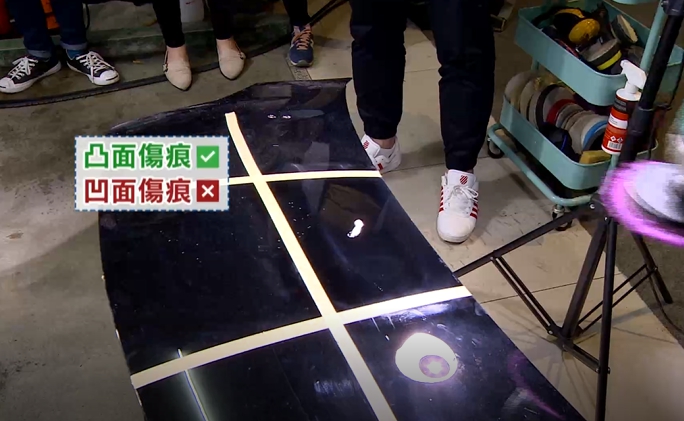別看他又塗又抹,其實分好幾步驟,第一步先用脫脂劑或清水,把髒污或污漬清除,接下來還要準備水性的研磨劑,再來用修護蠟收尾修飾,分子越細越能深入毛細孔,但不是每一種刮痕都適合DIY,如果凸面傷痕,代表是對方車漆黏上來可以處理掉,但如果變成凹面或者平面,建議最好請專家來。