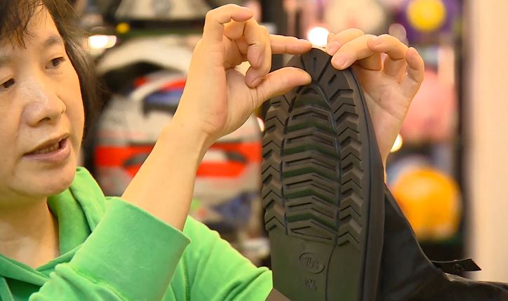 業者:「因為下雨天其實,最怕是說在走路的時候,雨水會讓我們滑倒,那有這種做止滑效果,還有一個厚度來講,它會讓我們走路比較踏實。那如果像這種,比較簡便型的,它是因為有特殊的需求,它會穿這種比較簡便型的。」