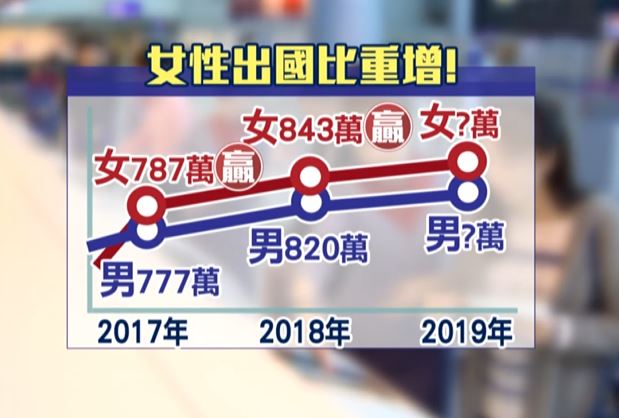 ▼女性出國人次也有843萬人次比男性出國人次多了23萬。(圖/東森新聞)