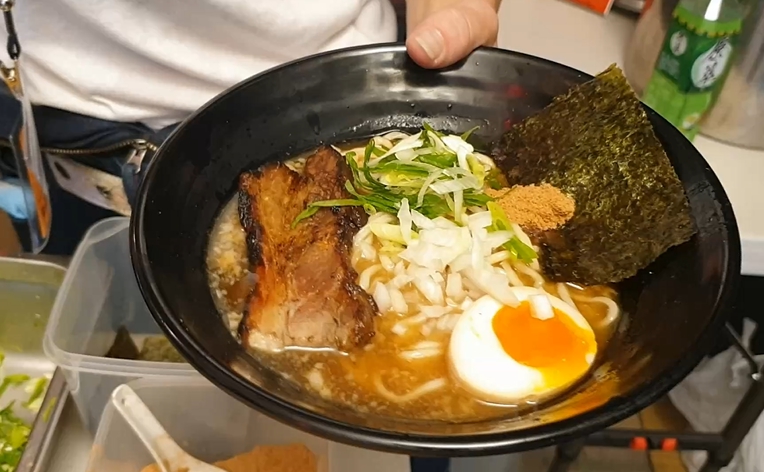 來自日本沖繩的風車拉麵,濃郁的湯頭外加大片叉燒,再配上一顆糖心蛋,熱呼呼的一碗拉麵上桌。