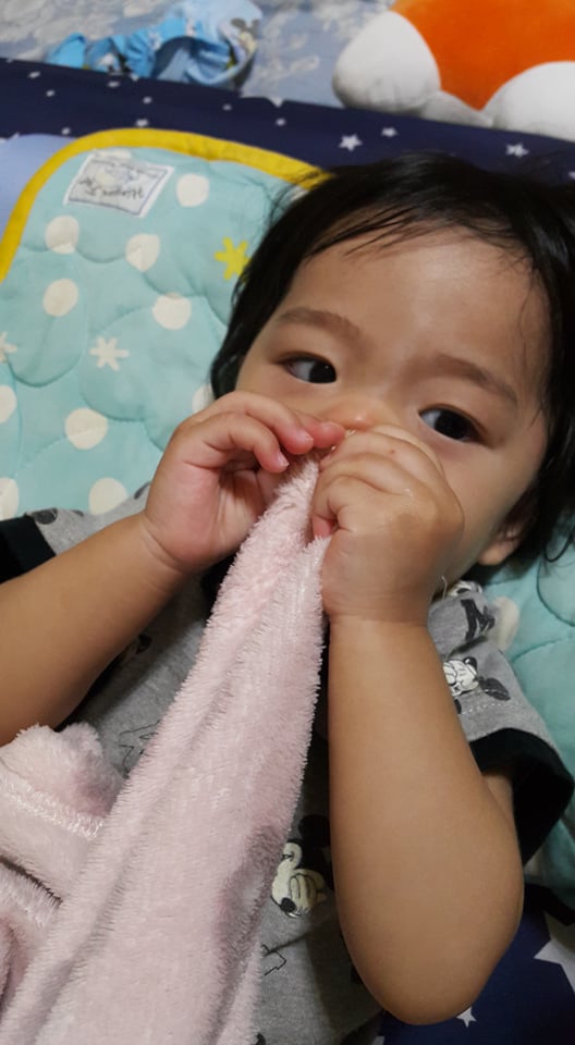 不少人都有一條陪伴自己長大的「小被被」,只要少了它,就會覺得不對勁!儘管在別人眼中「小被被」只是一條破爛的臭棉被,但對於今年才1歲9個月大的妹妹阿蓁來說,可是她心愛的寶貝,阿蓁每天的「例行公事」就是要拿起小被被狂聞,聞完還會露出陶醉的模樣,讓媽媽見狀忍不住笑虧「實在是粉臭(很臭)!」