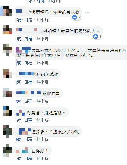 網友看了也紛紛留言力挺原PO,「這嗆回去剛好而已」、「11盤感覺不算多吧」、「吃快吃慢,吃多吃少干她屁事」、「又不是花她的錢是在講心酸的嗎?」、「那位住海邊?」、「他女友一定是假掰咖、約會小鳥胃,回家大嗑泡麵」。