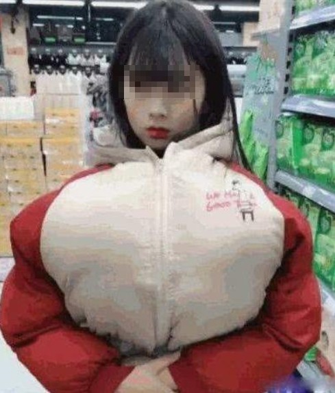 據陸媒報導,這名女子逛超商時左顧右盼,舉止有些不自然,再加上胸部與身體不符合比例,異常巨大,引來賣場員工注意,懷疑她是否將東西藏在裡面。員工當即就攔下這名女子,並表示「已經觀察妳很久,妳偷東西未免也偷得太明顯了,看妳胸前鼓成這樣!」