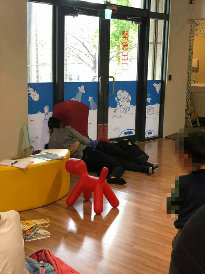 把圖書館當自己家?一名女網友日前帶著孩子到圖書館的兒童室看書,沒想到,一進門就撞見一對小情侶直接躺在木地板上摟摟抱抱,呈現「交纏狀態」,完全不顧現場還有許多幼童,誇張行徑讓原PO忍不住痛批:「要放閃也該換個地方吧!」