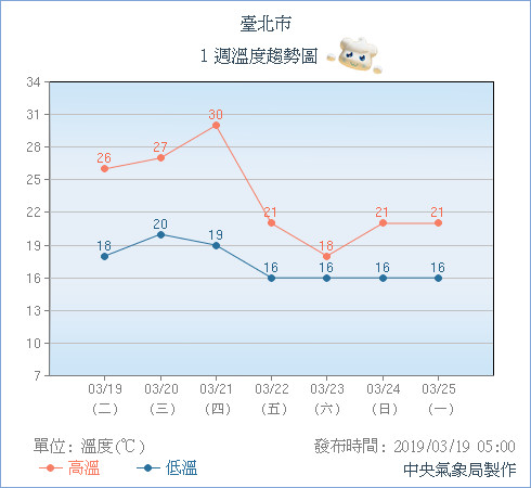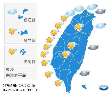 全台陽光露臉!今(19)日水氣減少,天氣逐漸放晴,但東部地區仍有局部短暫陣雨,而北部及東半部氣溫也上看到25到27度,中南部甚至狂飆至30度,明後2天(20日、21日)也都相當炎熱,已經稍微有夏天的氣息,然而周五(22日)北部氣溫卻掉到16度,請民眾務必注意保暖。