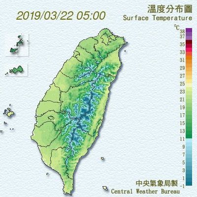 中央氣象局預報員李孟軒指出,今日北部地區有局部短暫雨,中部、東半部地區及南部山區下午也將轉為有局部短暫降雨,氣溫方面,北部天氣明顯轉涼,白天高溫僅約21、22度,其他地區影響較小,東半部高溫25-28度,中南部高溫29-31度,但入夜有涼意,北台灣低溫約15、16度,其他低溫17-19度。