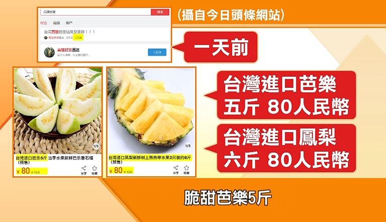 在互聯網上,擁用1.5億用戶的今日頭條,在大陸頗具影響力,如今正式開通高雄好貨網路商鋪,零距離無國界,把高雄鳳梨、芭樂,銷到14億人口的大陸市場。