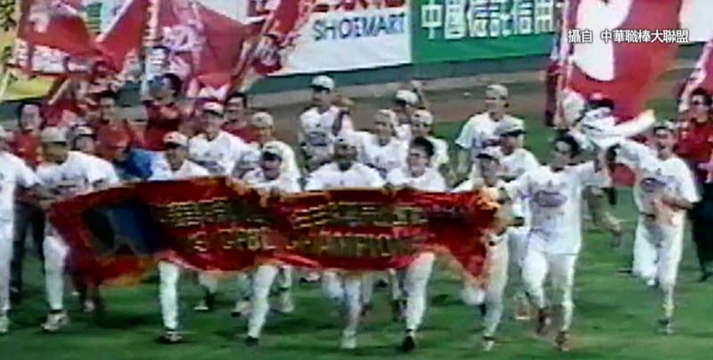 ▼20年前味全龍在戰力不佳,狀況依舊爭氣搶奪三連霸,全場歡聲雷動。(圖/東森新聞)