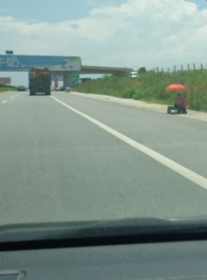 ●高速公路上竟然出現攤販?是可以停下來買東西嗎?