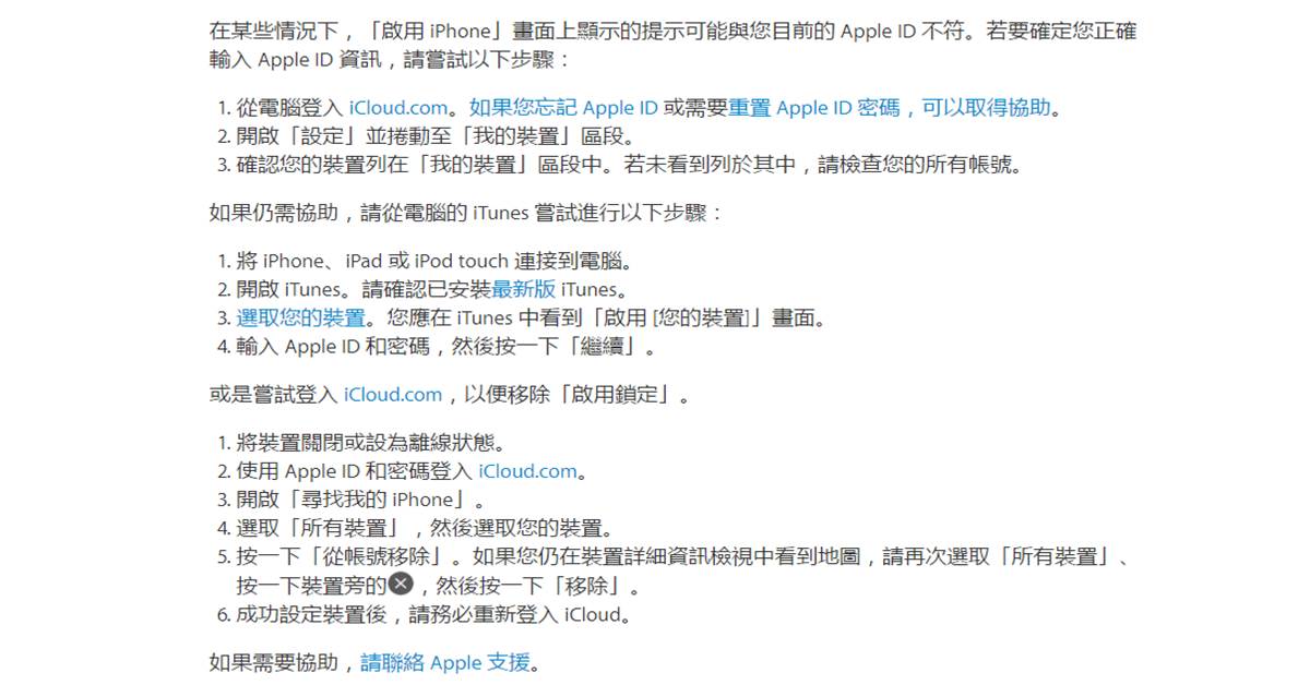 如果需要協助,請聯絡 Apple 支援。