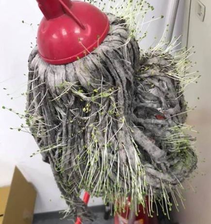 潮濕的地方常常會長出蕈類,但你看過拖把上長綠色植物嗎?日前有網友在「爆廢公社」PO出一張照片,長長一支拖把上,長滿了許多如苜蓿芽的植物,讓網友笑噴「這是生菜沙拉嗎?淋上千島醬就可以開動囉!」