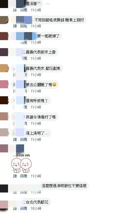 貼文曝光後,立刻在網路掀起一陣熱烈討論,不過,網友們除了不同情原PO的遭遇外,還紛紛留言笑虧,「剛好趕上清明」、「提早清明了」、「考慮樹葬嗎?比較環保」、「你還是跟震央一起埋了吧」、「需要紙箱跟我拿」、「嘉義代表前來上香」、「這麼想過清明節也不要這樣」、「台北代表獻花」、「算蠻調皮的啦」、「我們懷念你」、「你的行為堪稱男人中的表率,但是就是別惹恰查母(兇女人),別讓愛你的人對你的照片說清明節快樂」。另外,還有熱心的網友關心原PO的現況,「不知道樓主是否還活著」、「還有呼吸嗎?」、「記得隨時PO近況,讓大家知道你是否安好」、「小心晚7天回家」。
