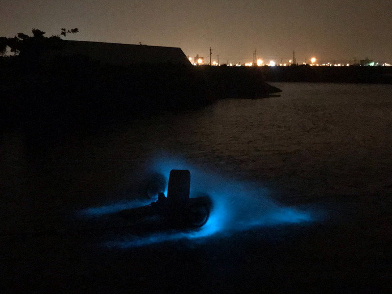 彌陀區舊港里和永安區交接一帶,去年就被發現有藍眼淚漁塭,今年藍眼淚漁塭再現蹤影,民眾奔相走告,難得一見的生態地景近日吸引很多遊客入夜探索生態奇景。