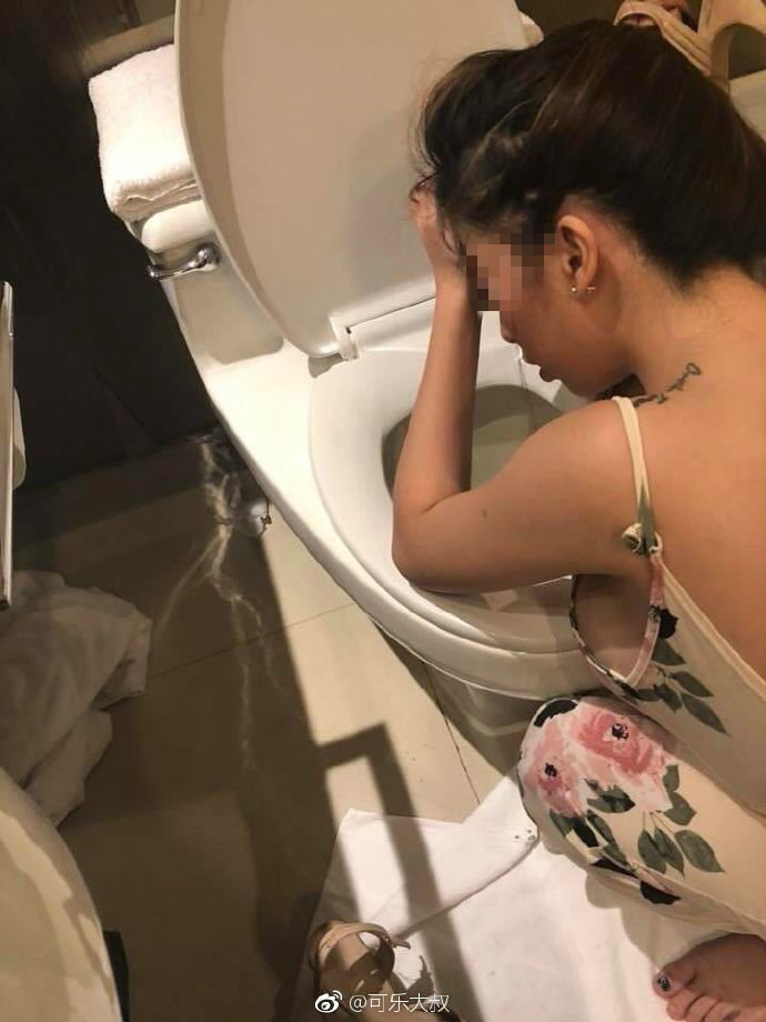 ▼正妹回到房間後開始狂吐。(圖/翻攝自可樂大叔 微博)