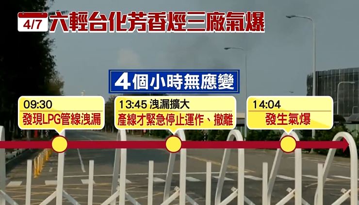 黑色濃煙夾著火光直竄天際,整整燒了26個小時,六輕台化芳香烴三廠本月7號發生LPG管線洩漏引發氣爆,廠區調查報告出爐,指出當天上午9點半就已發現管線洩漏,拖到氣爆才通報,雲林縣長張麗善大為光火。