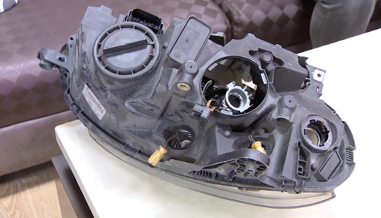 進口車的大燈原本包覆完整的電線,輕輕一撥,全部脫落,這還不只是大燈壞掉不能用而已,更嚴重的有可能引發火燒車。