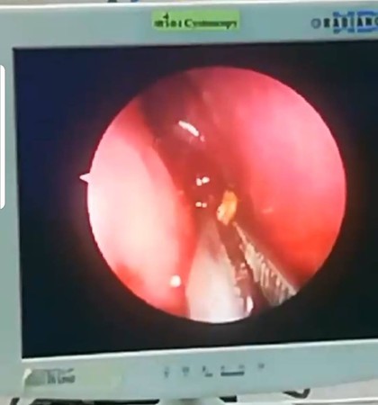 ▼男子鼻腔中流出發惡臭膿液。(圖/翻攝自โรงพยาบาลสิชล นครศรีธรรมราช 臉書)
