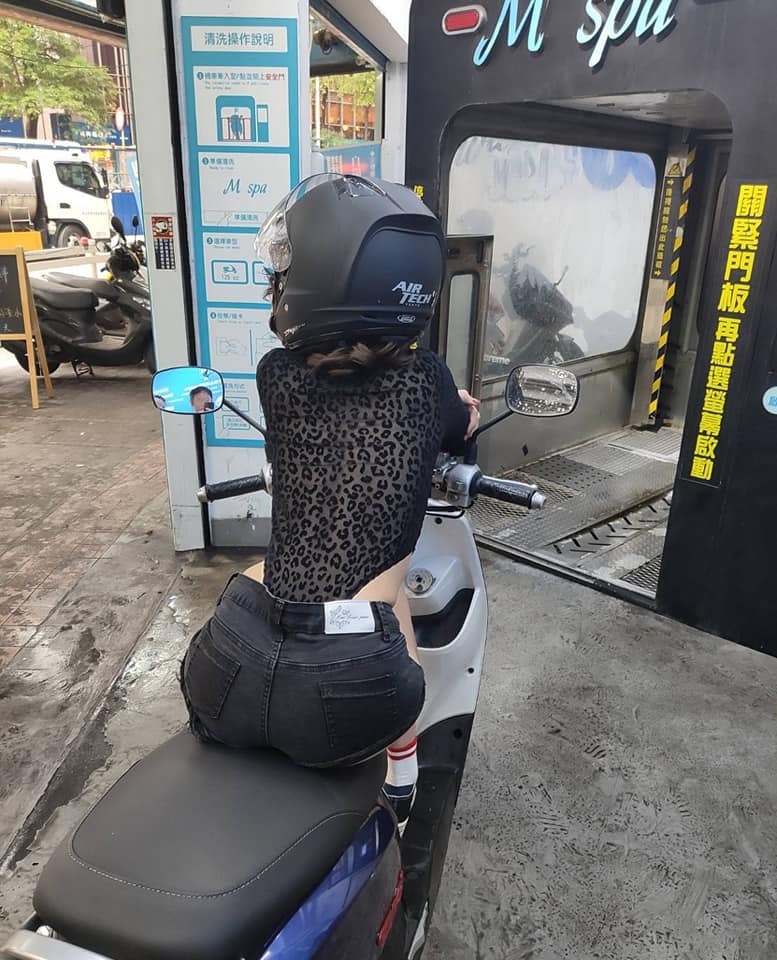 ▼正妹的小蠻腰和臀線讓不少網友看得凍未條。(圖/翻攝自M Spa自動化機車洗淨中和店臉書)