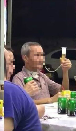 其實,去(2018)年也曾有網友目擊一名坐在餐桌旁的老翁,疑似將啤酒的液體倒入紙杯中,接著同樣再倒進鼻胃管,甚至還不忘擺出「舉杯」姿勢歡樂享用,網友便馬上拿出手機錄下,上傳至網路上掀起熱議。不過,據《三立新聞》報導,耳鼻喉科醫師則建議患者千萬不要模仿、嘗試,因為用鼻胃管灌食若速度過快,很可能引發嘔吐或腸胃不適,再加上酒精對身體並沒有好處,還可能對某些藥物產生交互作用。
