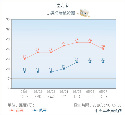 ▼氣象局估今北部高溫僅22度。(圖/中央氣象局)