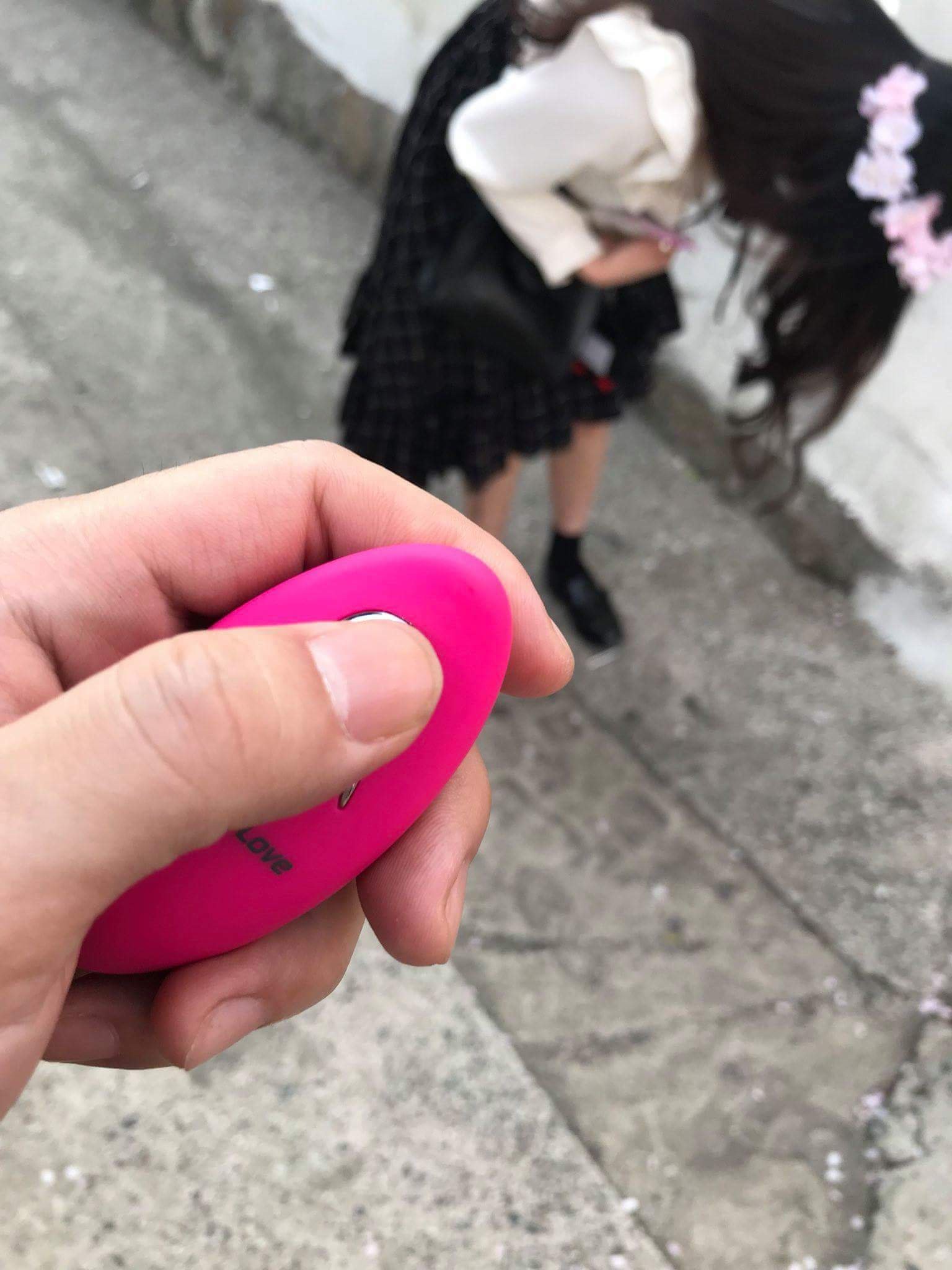 根據市場調查,全球成人情趣用品市場超過70兆台幣,每年呈現以近7%的年複合成長率上漲,成長最快速的區域就是亞洲,同時也讓正確性教育受到重視。近日「爆廢公社」瘋傳一組照片,照片中,只見一對情侶出遊賞櫻花,其中長髮女友擁有一雙電眼迷人,顏值相當高,加上頭頂花圈,現場充滿粉紅泡泡氣氛,非常天真爛漫。沒想到男友接下來掏出神秘的粉紅色遙控器,按壓著上頭銀色按鈕,結果女友忽然一陣不對勁,雙腿癱軟在路邊,讓許多老司機看了想入非非。
