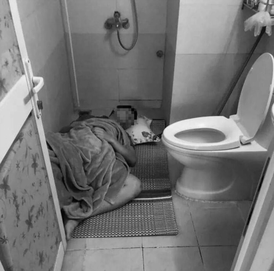 男子開浴室門,驚見地板有個龐然大物,仔細一看竟是弟弟,只見「綠色床墊」上有枕頭和棉被,而弟弟人就躺在蓮蓬頭下方,一旁還有馬桶,若是正常人根本不願意在浴室睡上一覺,只不過弟弟看起來相當適應該環境,依然能安穩地呼呼大睡,即便廁所門被打開也不為所動,讓男子看得滿是心酸。