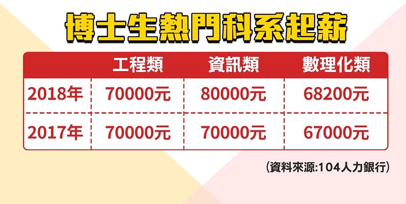 以人力銀行統計幾個熱門博士學位,畢業後的博士生起薪,工程類別的有大約七萬元,資訊類則是八萬元上下,而數理化類的也有68200元左右,比起郵局窗口櫃台的31K起薪的確差距不小。