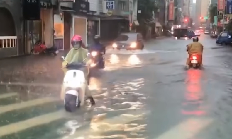 這次對流旺盛,造成強降雨情況發生,新竹地漥地區多處積水。