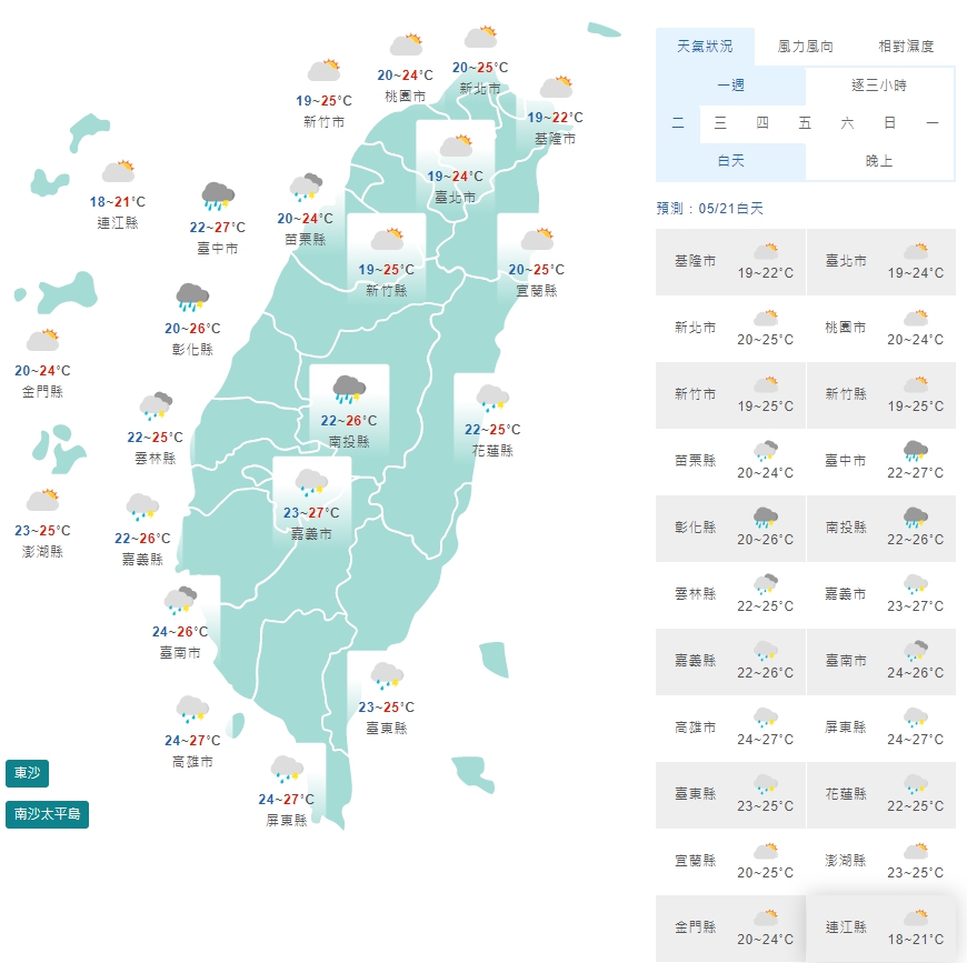 ▼21日白天天氣預測。(圖/中央氣象局)