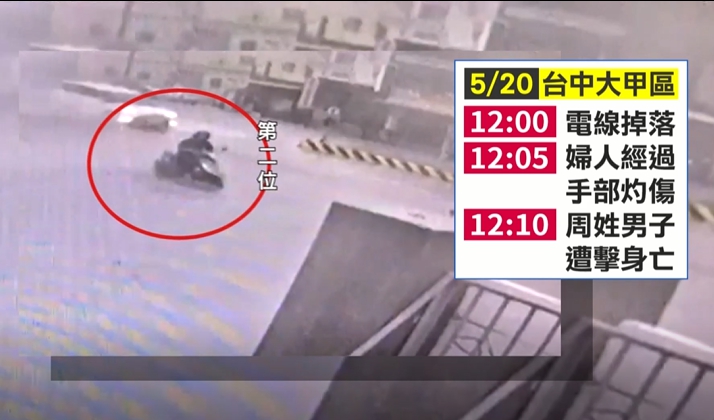 重看當天的畫面,12點電線掉落後,有一名婦人在12點5分先經過,只有手部灼傷,五分鐘後,周姓騎士經過,卻因此身亡,也讓外界懷疑,沒有確認現場狀況,怎麼會復電。