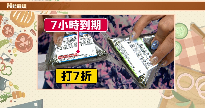 挑挑選選,三明治、飯糰還是便當、涼麵,怎麼上頭多了個標籤、靠近點看,同樣都是三角飯糰,但是翻開背面一看,一個是到期時間比較早,不到7小時就要過期,所以就打7折,方法是,產品背後的標籤條碼會有系統的控制,到期前7小時,電腦連線,就會自動降下折扣。