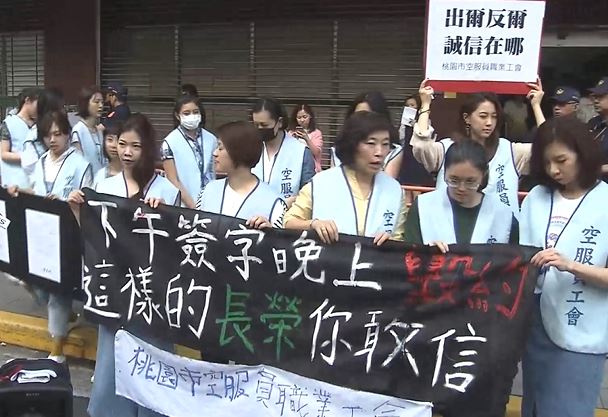 空服員工會:「遵守協議,遵守協議,誠意協商,誠意協商。」